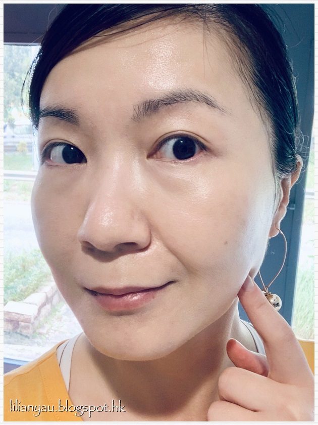 肌膚水潤有光澤,毛孔亦見有收斂了,尤其面頰及額頭特別明顯,肌膚透亮平滑,觸感有彈性!