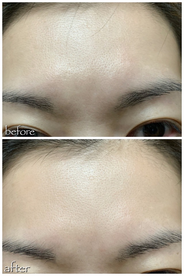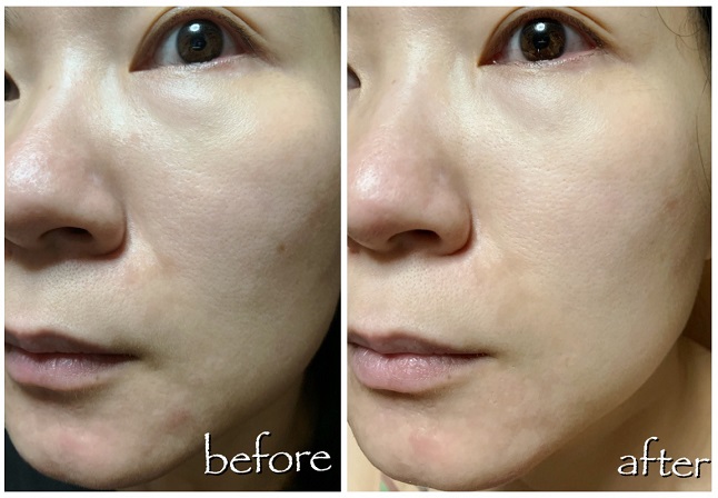 其實療程後第二天已經感到療程效果了,面部膚色均勻有明亮感,加上毛孔、細紋、瑕疵等都減淡了不少,所以只需使用比平日更少量的粉底,重點遮掉痘印已經能使全面膚色均勻。