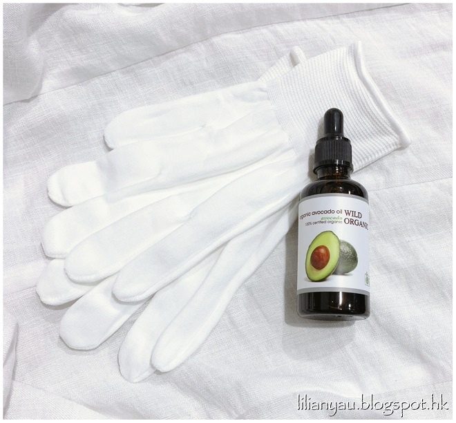 於是我用了這個有機牛油果油為乾爆雙手作修護treatment,只需準備牛油果油、hand cream 、棉質手套便可以了!!