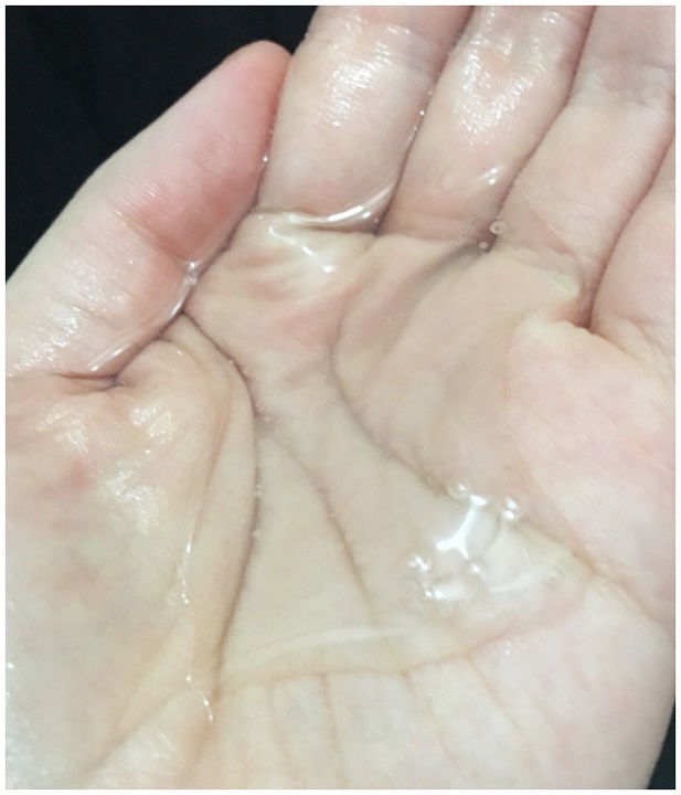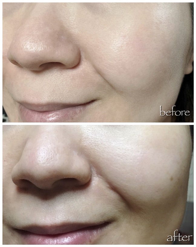 肌膚水潤有光澤,毛孔亦見有收斂了,尤其面頰及額頭特別明顯,肌膚透亮平滑,觸感有彈性!