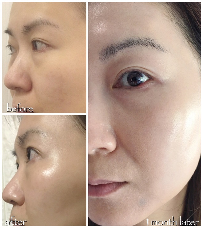 其實療程後第二天已經感到療程效果了,面部膚色均勻有明亮感,加上毛孔、細紋、瑕疵等都減淡了不少,所以只需使用比平日更少量的粉底,重點遮掉痘印已經能使全面膚色均勻。
